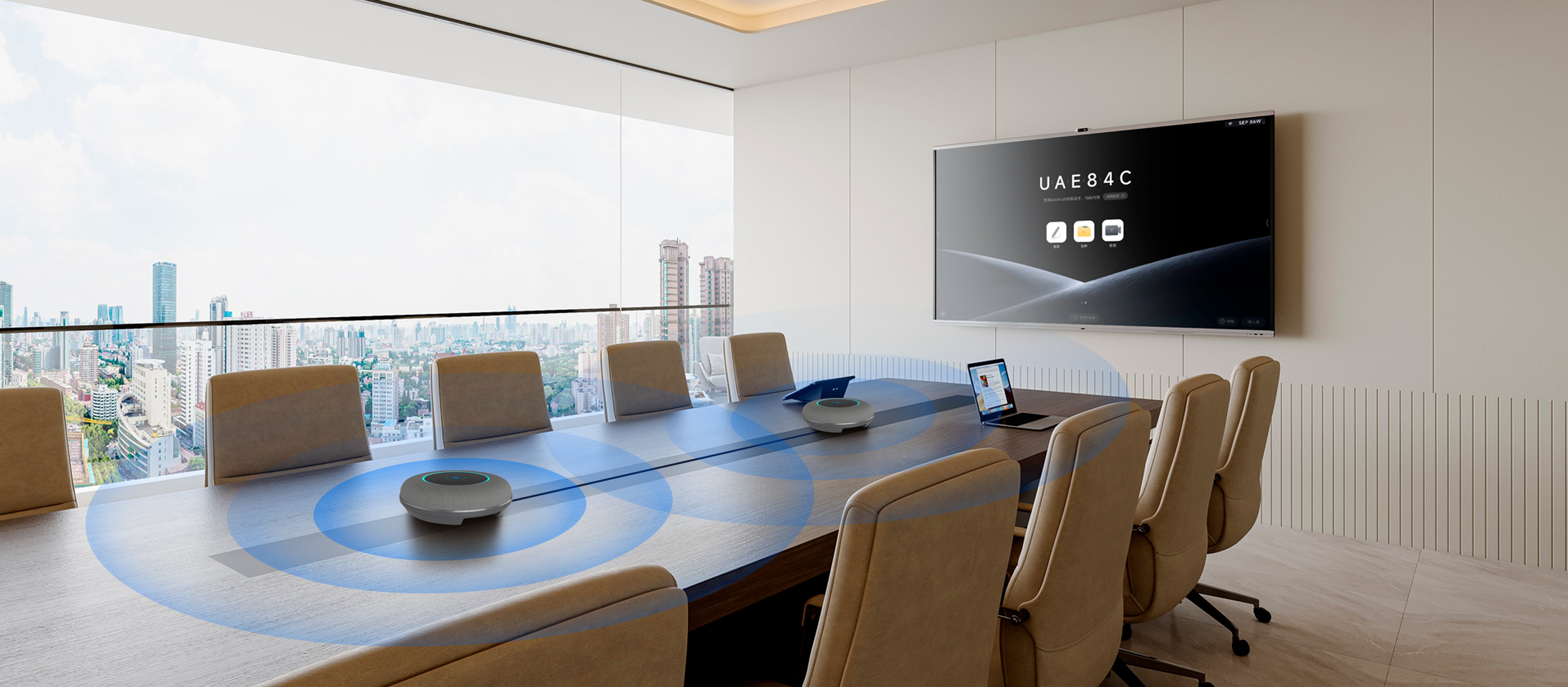 会议圆盘麦桌面级联安装场景